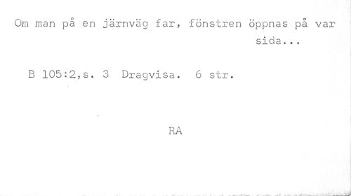 //// Om man på en järnväg far, fönstren öppnas på var //// sida... //// B 105:2,s. 3 Dragvisa. 6 str. //// k //// RA //// ' 'f ////
