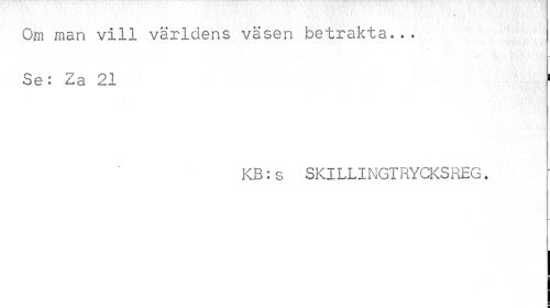 //// Om man vill världens väsen betrakta... //// Se: Za 21 1 //// KB:s SKILLINGTRYCKSREG. . ////