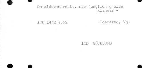 //// i //// wfr //// Om midsommarnatt, när jungfrun gjorde //// kransar - //// IOD 14:2,s.62 Tostared, Vg. //// IOD GÖTEBORG ////