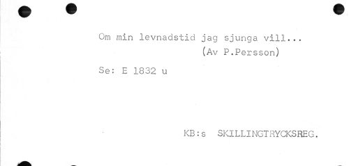 //// Om min levnadstid jag sjunga vill... //// (Av P.Persson) //// Se: E 1832 u //// KB:s SKILLINGTRYCKSREG. ////