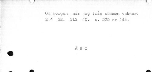 //// Om morgon, när jag från sömmen vaknar. //// ¦ //// 2:4 GE. SLS 40. s. 225 nr 144. //// * //// O //// A B O ////