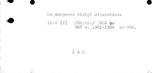 //// Om morgonen tidigt utvandrande //// 16:4 (?) /Sk.tr./ SLS éx //// 367 s. 1301-1304 nr 496. //// ÅBO //// Si---v ////