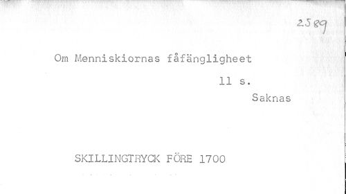 //// Om Menniskiornas fåfängligheet 1 //// 11 s. //// Saknas //// SKILLINGTRYCK FÖRE 1700 ////