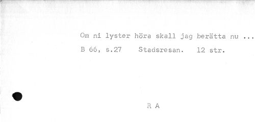 //// Om ni lyster höra skall jag berätta nu ... B 66, s.27 Stadsresan. 12 str. //// R A ////