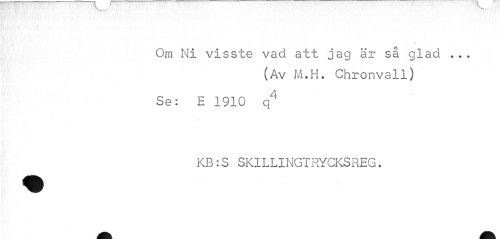 //// Om Ni visste vad att jag är så glad . . . //// (Av M.H. Chronvall) //// Se: E 1910 q4 //// KB:S SKILLINGTRYCKSREG. ////