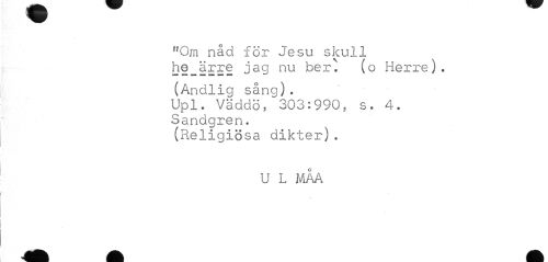 //// "Om nåd för Jesu skull he_ärre jag nu ber. (o Herre). //// (Andlig såna). //// Upl. Väddö, 303:990, s. 4. //// Sandgren. //// (Religiösa dikter). //// U L MÅA ////