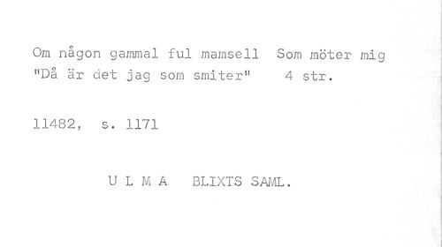 //// Om någon gammal ful mamsell Som möter mig HDå är det jag som smiter1' 4 str. //// i //// 11482, s. 1171 //// 1 i //// U L M A. BLIXTS SAML. //// '¦5 ////