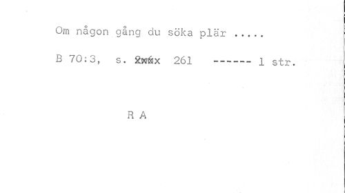 //// Om någon gång du söka plär ... //// B 70:3, s. 2wkx 261 ---1 str. //// R A //// * ////