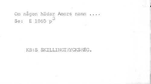 //// , //// Om nåqon hädar Amors namn ... Se: E 1865 p3 //// KB:S SKILLINGTRYCKSREG. ////