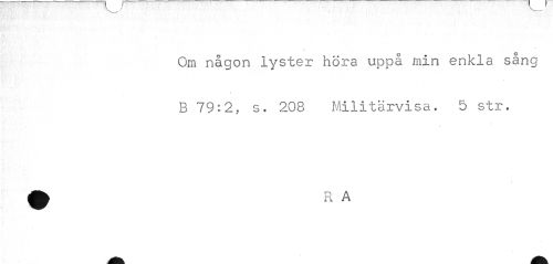 //// / //// Om någon lyster höra uppå min enkla sång //// » //// B 19-.2, s. 208 Militärvisa. 5 str. //// i ////