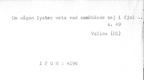 //// Om någon lyster veta vad somähände sej i fjol .. //// s. 49 1 //// Valida (Hl) //// I F G H : 4196 ////