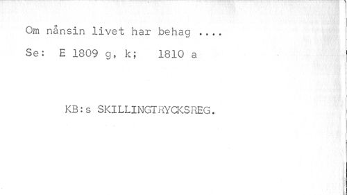 //// 0 //// Om nånsin livet har behag ... Se: E 1809 g, k; 1810 a //// , //// KB:s SKILLINGTRYCKSREG. //// { ////