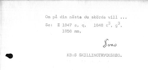 //// Om på din nästa du skörda vill ... //// Se: E 1847 a, q, 1848 c3, g3, //// 1858 mm, //// Jm/I*^ //// A KB:S SKILLINGTRYCKSREG. ////