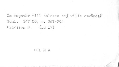 //// 1. //// Om regnvär till solsken sej ville omvända!" Sdml. 347:50, s. 267-294 Ericsson G. (bd 17) //// U L M A //// ^ I ////