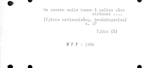 //// Om russen sulle komma å nalkas våra //// stränner ... //// (Tjörns nationalsång , beväringsvisa) //// s. 37 //// Tjörn (B) //// EF F : 1996 ////