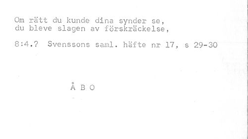 //// Om ratt du kunde dina synder se, du bleve slagen av förskräckelse, //// 8:4.? Svenssons sarnl. häfte nr 17, s 29-30 //// i ^ - //// ÅBO //// I ////