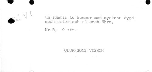 //// , v[ l //// 1 0m sommar tu kommer med myckenu dygd, //// ' medh örter och så medh ähre, //// Nr 5, 9 str. //// OLUFFSONS VISBOK ////