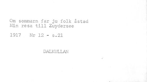 //// i //// Om sommarn far ju folk åstad Min resa till Zuydersee //// 1917 . Nr 12 - s.21 //// DALKULLAN //// j //// ¦ ////