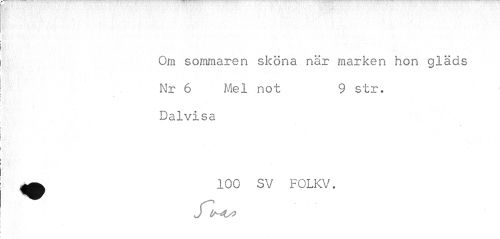 //// Om sommaren sköna när marken hon gläds //// Nr 6 Mel not 9 str. //// Dalvisa //// ^^ 100 SV FOLKV. ////