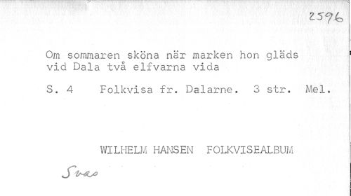//// Om sommaren sköna när marken hon gläds ä //// vid Dala två elfvarna vida //// S. 4 Folkvisa fr. Dalarne. 3 str. Mel. //// WILHELM HANSEN FOLKVISEALBUM ////