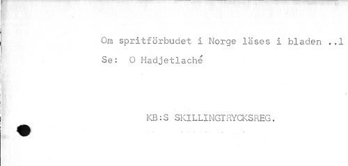 //// Om spritförbudet i Norge läses i bladen ..1 Se: O Hadjetlaché //// v //// KB: S S Kl L LI NGT RYCKS REG. ////