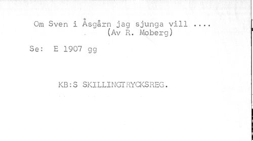 //// ° o //// Om Sven i Asgarn jag sjunga vill ... //// (Av R. Moberg) //// Se: E 1907 gg //// KB:S SKILLINGTRYCKSREG. ////