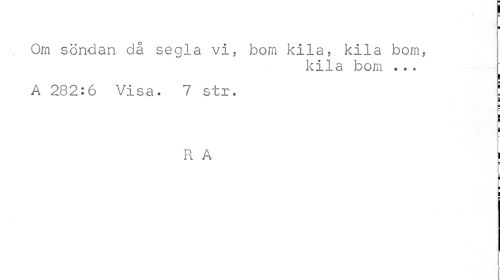 //// ¦ //// Om söndan då segla vi, bom kila? kila bom. //// kila bom ... //// ! //// A 282:6 Visa. 7 str. | //// ¦ //// R A i //// ¦ //// i i ////