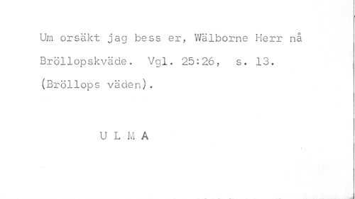 //// Um orsäkt jag bess er, Wälborne Herr nå Bröllopskväde. Vgl. 25:26, s. 13. (Bröllops vaden). //// U L M A ////