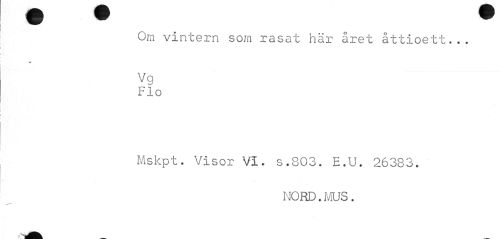 //// Om vintern som rasat här året åttioett... //// ¦ //// Vg Fio //// Mskpt. Visor Vi. s.803. E.U. 26383. //// NORD.MUS. ////