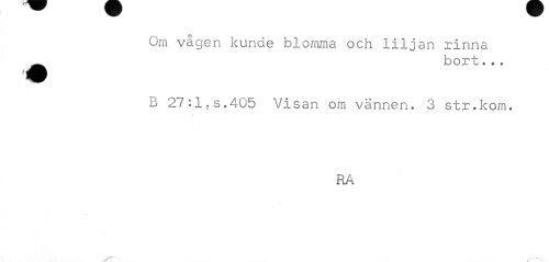 //// Om vågen kunde blomma och liljan rinna //// •bort... //// B 27:l?s.405 Visan om vännen. 3 str.kom. //// RA ////