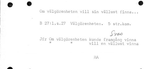 //// Om välgörenheten vill sin vällust finna... //// A //// B 27:l,s.27 Välgörenheten. 5 str.kom. //// Jfr Om välgörenheten kunde framgång vinna 11 n vill en vällust vinna //// RA ////