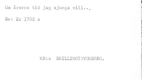 //// ¦ //// Om årsens tid jag sjunga vill... //// Se: Zz 1702 a , //// KB:s SKILLINGTRYCKSREG. ////