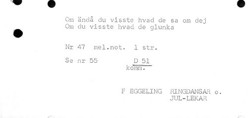//// Om ända du visste hvad de sa om dej Om du visste hvad de glunka //// Nr 47 mel.not, 1 str. Se nr 55 D 51 //// •T ' " //// k o mm. //// F EGGELING RINGDANSAR o. //// JUL-LEKAR //// ___-N ////