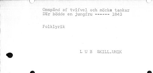//// Omspänd af tvifvel och mörke tankar Där bödde en jungfru --- 1843 //// Folklyrik //// LUB SKILL.UNIK ////