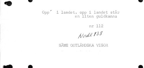 //// Opp' i landet, opp i landet står //// en liten guldkanna //// nr 112 SÄWE GOTLÄNDSKA VISOR ////