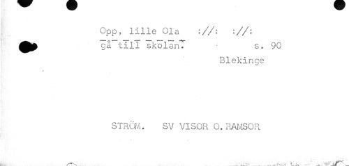 //// Opp, lille Ola ://: ://: Q} gå till skolanT s. 90 //// Blekinge //// / //// STRÖM. SV VISOR O. RAMSOR //// ^ . « i. dF* ////