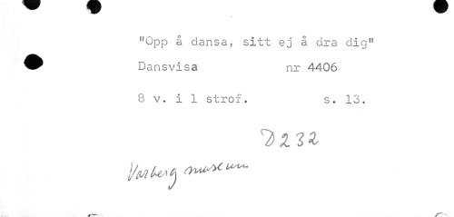 //// nO;op å dansa, sitt ej å dra dig11 //// ^^ Dansvisa nr 4406 //// 8 v. i 1 strof. s. 13. j/fj} ***** ////