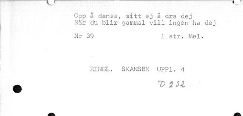 //// Opp å dansa, sitt ej å dra dej När du blir gammal vill ingen ha dej //// Nr 39 1 str. Mel. //// t //// RINGL. SKANSEN UPP1. 4 //// ^ 7> 2 2Z ////
