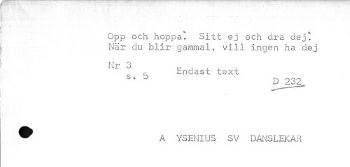 //// — — - .• ... //// Opp och hoppat Sitt ej och dra dejs. När du blir gammal, vill ingen ha dej //// ° Endast text //// s. o DJ232. //// ® A YSENIUS SV DANSLEKAR ////