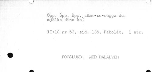 //// V t. g/ . //// Opp. opp, opp, sömm-se-sugga du, mjölka dina ko) //// • 4 //// 11:10 nr 53, sid. 135, Fäbolåt, 1 str. 9 FORSLUND. MED DALÄLVEN ////