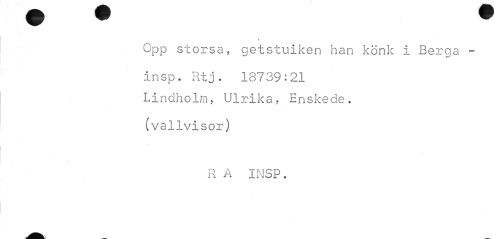 //// t //// Opp storsa, getstuiken han könk i Be3:ga - //// insp. Rtj. 18739:21 Lindholm, Ulrika, Enskede. //// (vallvisor) //// R A INSP. ////