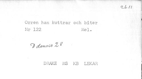 //// *l<o n //// i //// Orren han kuttrar och biter Nr 122 Me1. //// 9 d&^M z % //// DriÅKE MS KB LEKAR ////