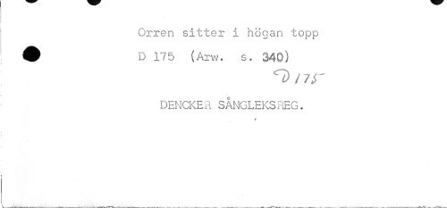 //// Orren sitter i högan topp ^ D 175 (Arw. s. 340) //// ^ / ?r //// DENCKER SÅNGLEKS REG. //// * ////