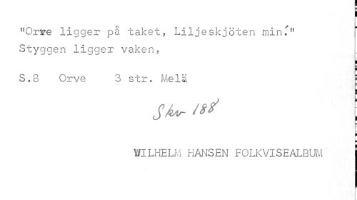 //// nOrs?e ligger på taket, Liljeskjöten min.'ff Styggen ligger vaken, //// S.8 Orve 3 str. Melä | //// Skr. ^ \ //// b //// f //// f //// WILHELM HANSEN FOLKVISEALBUM ////