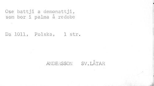//// Ose battji a demonattji, //// som bor i palma å redobe //// % //// Da 1011, Polska, 1 str. //// ANDERSSON SV.LÅTAR //// i» //// m ////