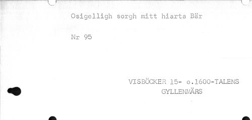 //// * //// Osigelligh sorgh mitt hiarta Bär Nr 95 //// VISBÖCKER 15- o.1600-TALENS //// GYLLENMÄRS ////