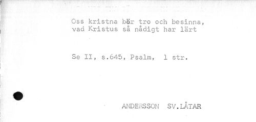 //// * m //// : • - - ¦ •» — — r-1 --•-T. .- ---. - •• //// ¦ //// ¦ //// Oss kristna bör tro och besinna, vad Kristus så nådigt har lärt //// Se II, s.645, Psalm, 1 str. //// ANDERSSON SV.LÅTAR ////