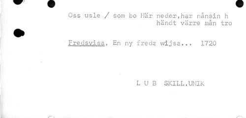 //// Oss usle / som bo Här neder.har nånsin h //// händt värre mån tro //// • Fredsvi sa, En ny fredz wijsa... 1720 //// i //// \ //// LUB SKILL.UNIK ////