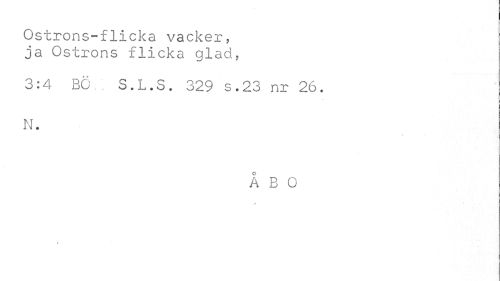 //// Ostrons-flicka vacker, ja Ostrons flicka glad, //// 3:4 BO. S.L.S. 329 s.23 nr 26. N. //// • • //// ÅBO ////