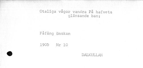 //// ¦ //// Otaliga vågor vandra På hafvets //// glänsande ban; //// Fåfäng önskan //// 1905 Nr 10 w DALKULLAN ////